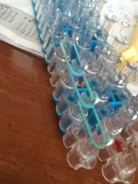 se necesita: un telar del arco iris, un gancho, bandas de goma y de un ' clip o clip de 'c'.Paso 1: Colocación de las bandas Con las bandas de color de rosa, mueva la banda de la clavija central a la izquierda e ir en línea recta hasta el segundo d a