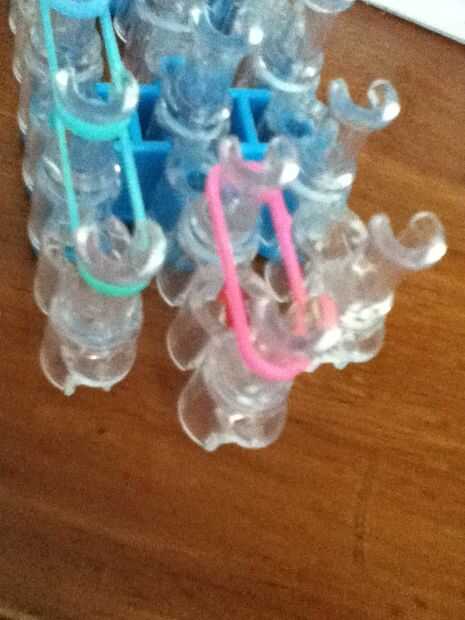 se necesita: un telar del arco iris, un gancho, bandas de goma y de un ' clip o clip de 'c'.Paso 1: Colocación de las bandas Con las bandas de color de rosa, mueva la banda de la clavija central a la izquierda e ir en línea recta hasta el segundo d a