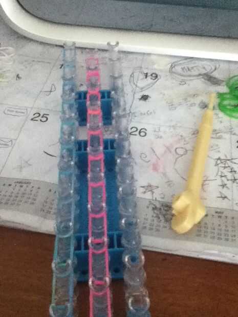 se necesita: un telar del arco iris, un gancho, bandas de goma y de un ' clip o clip de 'c'.Paso 1: Colocación de las bandas Con las bandas de color de rosa, mueva la banda de la clavija central a la izquierda e ir en línea recta hasta el segundo d a
