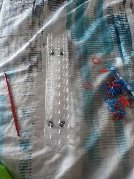 Paso 1: fuentes de Necesita el telar del arco iris a partir de kit y algunas elásticas.Paso 2: Colocar las bandas Se empieza por tomar tu primer color y ponerlo en la primera clavija izquierda.Paso 3: Colocar las bandas Continuar a poner las bandas d