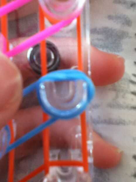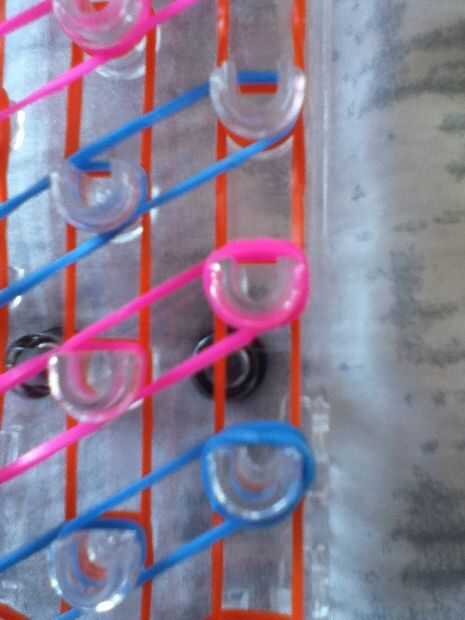 se necesita: un telar del arco iris, un gancho, bandas de goma y de un ' clip o clip de 'c'.Paso 1: Colocación de las bandas Con las bandas de color de rosa, mueva la banda de la clavija central a la izquierda e ir en línea recta hasta el segundo d a