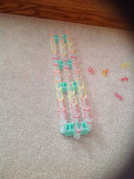 Aquí es cómo hacer el arco iris telar bebida sola.Paso 1: Obtener los elementos necesita cualquier color gomas C clip, gancho, telar.Paso 2: colocación de bandas de caucho Hacia fuera sus gomas en cada conjunto de clavijas.Paso 3: Tiempo de agregar t