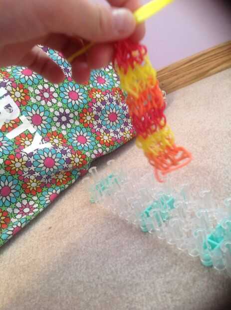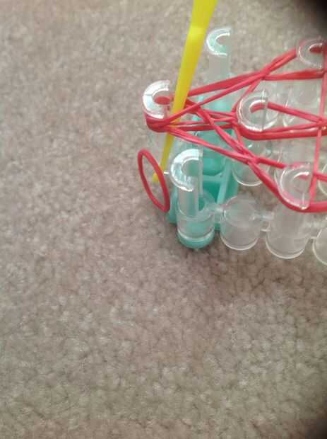se necesita: un telar del arco iris, un gancho, bandas de goma y de un ' clip o clip de 'c'.Paso 1: Colocación de las bandas Con las bandas de color de rosa, mueva la banda de la clavija central a la izquierda e ir en línea recta hasta el segundo d a