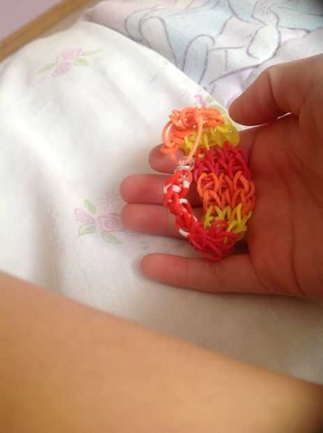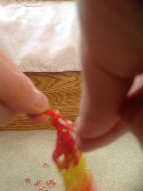 Probablemente no es tiempo suficiente para usted, por lo que vas a tomar algunas bandas más y lazo a través de las bandas en su gancho. Hacerlo hasta que sea tiempo suficiente para la muñeca. Luego tome un clip C/S y fíjelo a ambos extremos.