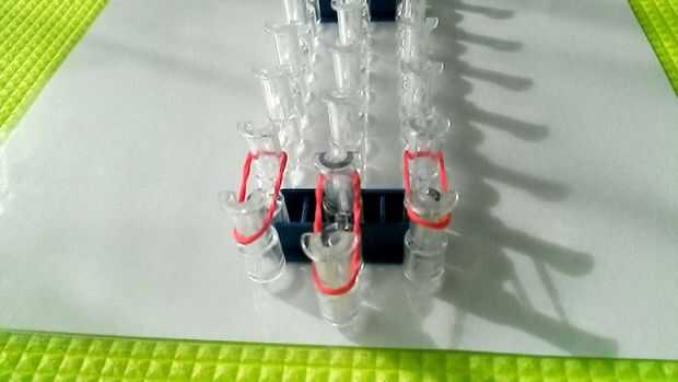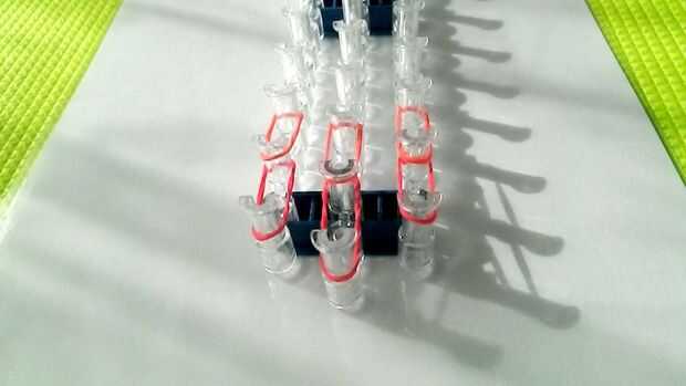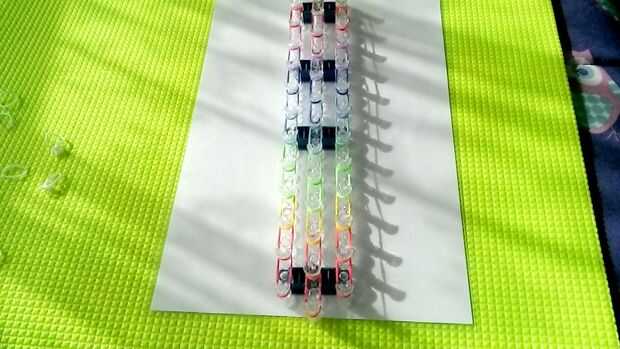 se necesita: un telar del arco iris, un gancho, bandas de goma y de un ' clip o clip de 'c'.Paso 1: Colocación de las bandas Con las bandas de color de rosa, mueva la banda de la clavija central a la izquierda e ir en línea recta hasta el segundo d a
