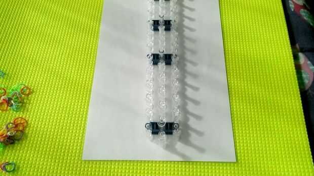Empezar a crear la base colocando sus bandas con el conector de frente a ellos. (Las fotos tienen más sentido)