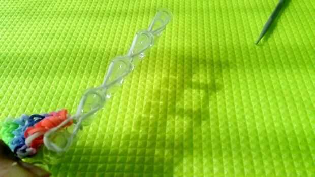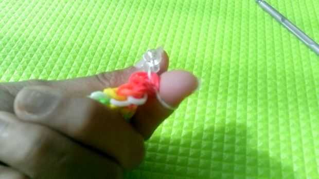 En primer lugar, el gancho con dos dedos y se añade un clip c o s para fijar un extremo de la banda...
