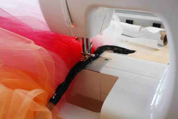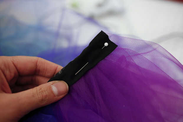 Reloj donde el tul está descansando, no quieren cosa alguna de él en su cintura.