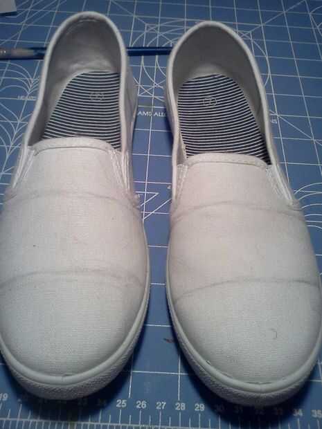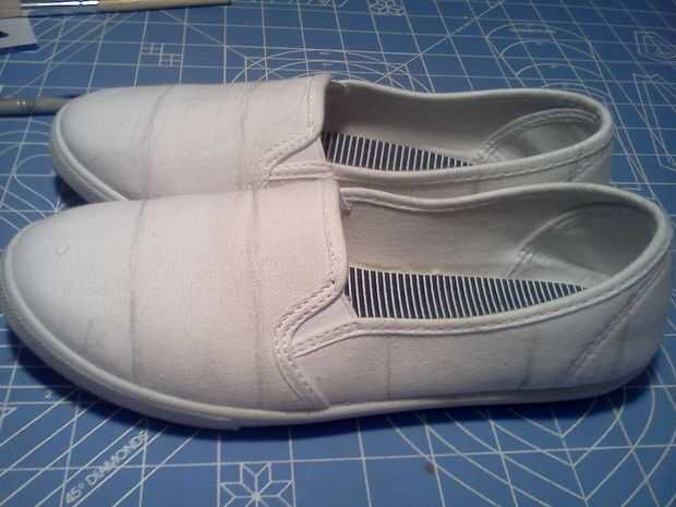 Cuando empecé mi proyecto, he tenido un par de cordones blanco llano y un par de zapatos tenis de lienzo blanco, tamaño de los niños 1. He comprado también marcadores permanentes, resistente al agua que no 'sangran' cuando se usa en la tela, hay much