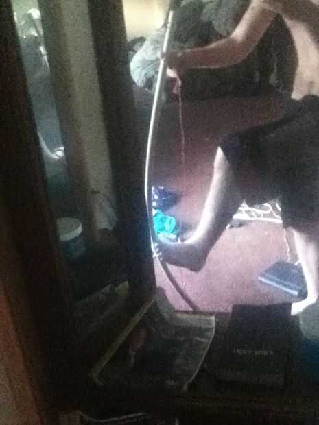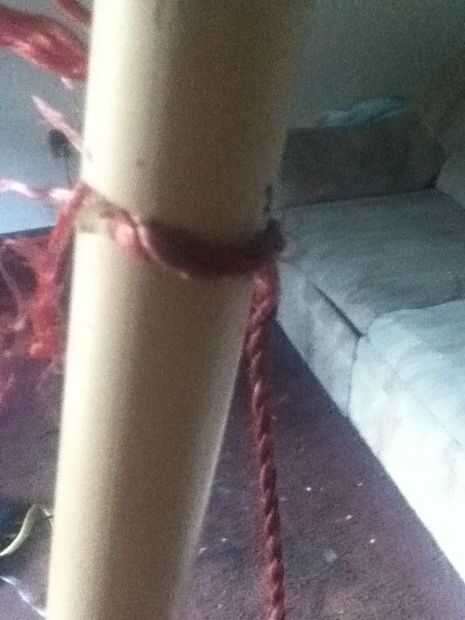 1-corte unos agujeros en el lado de los tubos para cadena no resbale tie-2 uno de los extremos de la cadena mientras que el arco es recto hasta 3-doblar el arco (me pareció más fácil doblarla con mi pie) y atar el otro extremo en el arco agradable y apretado, mientras que el arco es doblado. 4 - puede añadir un descanso de la flecha en el lado simplemente talla 5-ahora tiene un arco de prueba de 30-40 libras... Disfrute :)