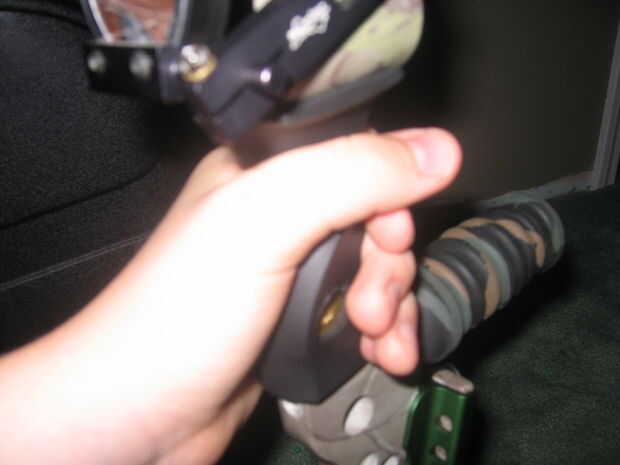 Coger su arco. Usted necesita tener un agarre suelto pero resistente en la proa. A mucha presión en la empuñadura, el par más tendrás, que puede causar fatiga, o incluso la muerte... JAJAJA, solo es broma. Pero no tienen un férreo control.