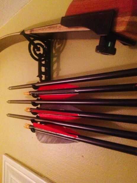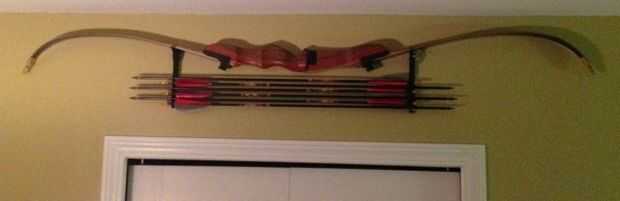 mis 2 hijas y yo somos arqueros de deporte.   Almacenar correctamente el arco recurvo arcos (y flechas asociadas) aún compacto fue un reto y era incapaz de encontrar una solución satisfactoria preparada comercialmente.   Óptimo que desea colgar el arco sin encordar sesión horizontalmente dos clavijas de la pared nivel y almacenaron las flechas en horizontal por debajo de ella.   Los diseños comerciales pocos fueron trozos de madera de los muebles, que no encajaría en cualquier lugar en mi casa y estaban sobre diseñado para la tarea en cuestión.