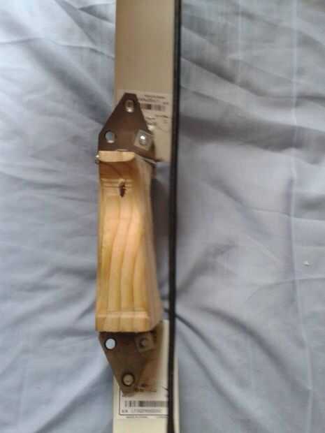 Cosas de la pareja podrían haber ido mejor: he notado a uno del miembro se tuerce un poco porque su atornillado al mango mal, es que la extremidad de proa sólo tiene un agujero en ella y no estaba dispuesto a perforar a otro por lo que sólo tiene en el punto de conexión para la extremidad del arco es obligada a girar alrededor de cuando usted está tratando de fijar la cuerda , La bisagra consiguió realmente quieren lo que yo quería pero resulta que no venden las bisagras de la puerta con más que un agujero en el centro para im pegado con él.