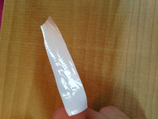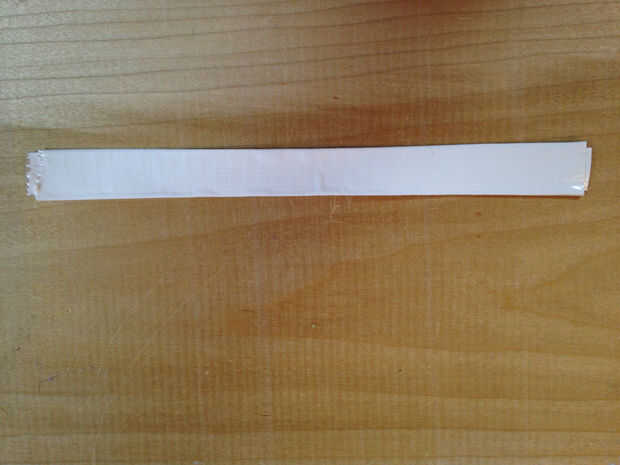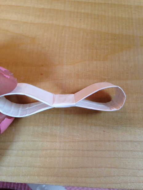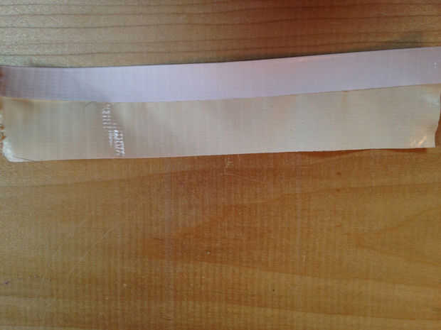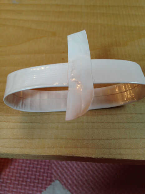 Sacar su 6 pulgadas pedazo largo de cinta del conducto y doblar dos veces hot dog forma, luego cortar un pedazo pequeño de cinta y forma de los dos extremos de la pieza ya doblada al medio, entonces haz tu pequeño pedazo de cinta y ponerlo sobre los dos pliegues mediados y luego la parte principal del arco se hace.