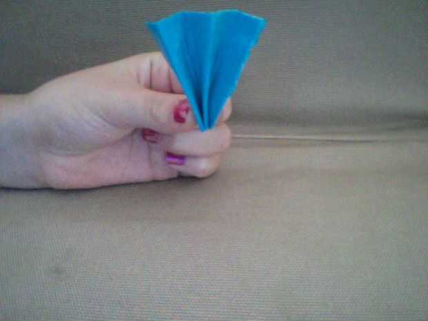 Luego a dejar ir vuelta toda la pieza quede la parte doblada no de la Plaza hacia usted y luego traer el lado doblado hacia arriba