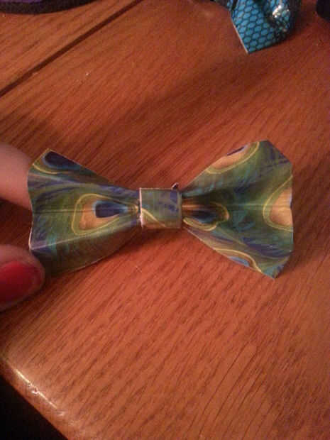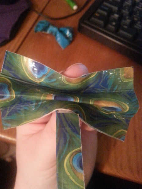 Esto es lo que se verá como cuando estamos acabadosPaso 1: fuentes de para hacer este arco necesita duck tape, regla y tijeras.Paso 2: Hacer el arco tomar dos 3 pulgadas piezas de pato con cinta y ponerlos juntos (pegajoso al pegajoso)Luego, corte un