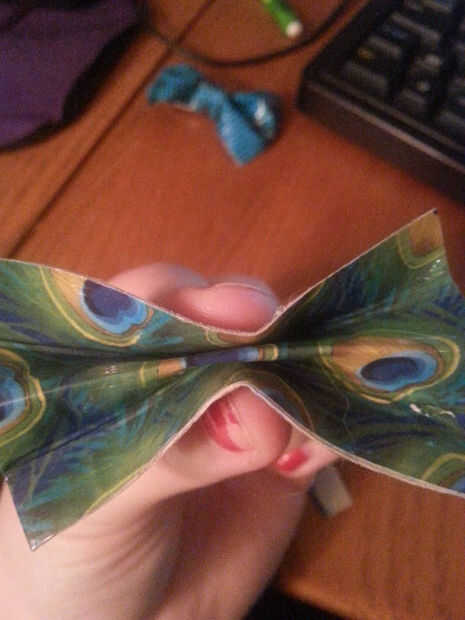 arcos de la cinta de conducto son grandes!Usted puede poner en los zapatos o clips o pulseras!Paso 1: Paso 1 En primer lugar uno o dos colores.Dos colores si desea que cada lado del arco para ser diferente.Tome su color y el ojo qué tan grande que qu