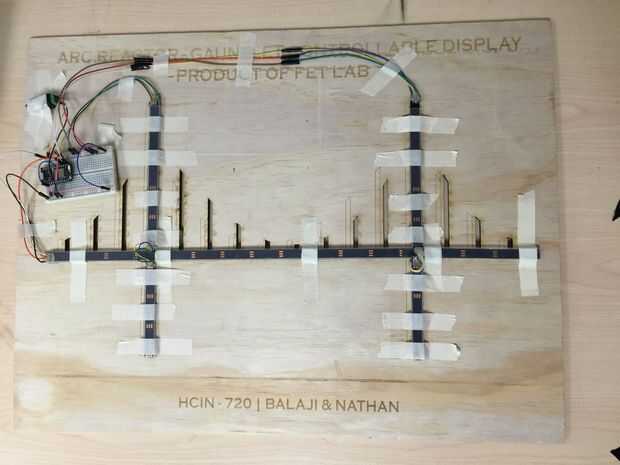 2. Corte las tiras de LED RGB de NeoPixel. Lugar a lo largo del diseño.