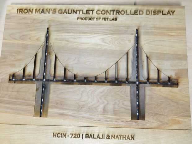 1. laser corte y grabado de pistas hacia fuera un hermoso patrón. Optamos por diseñar el puente Golden Gate.