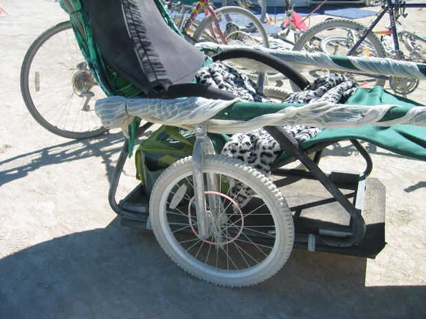 Este es un carro bastante resbaladizo. Es simplemente una silla con un par de bifurcaciones de la bicicleta atornillados a los lados.