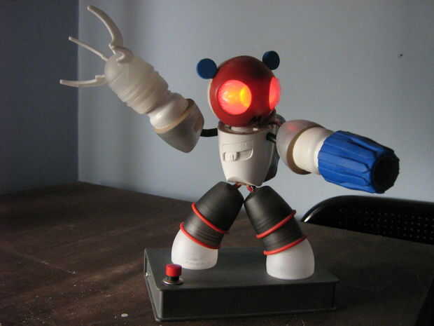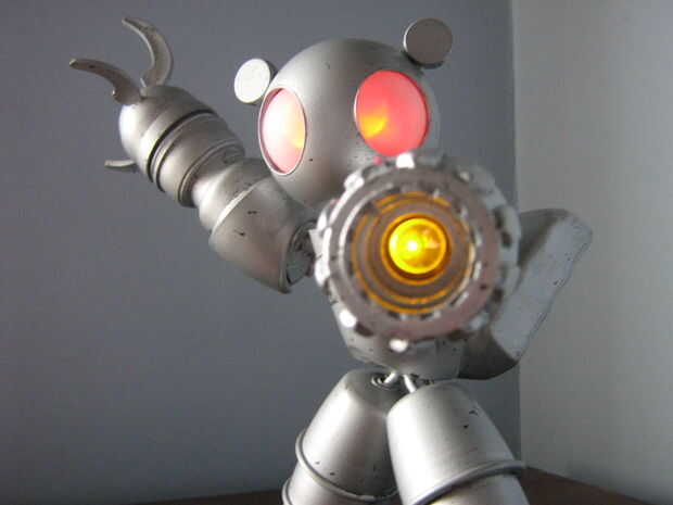 Usé alambre de cobre para unir las extremidades al cuerpo, epóxica, pintura, LEDs y baterías. Y tuercas y tornillos.