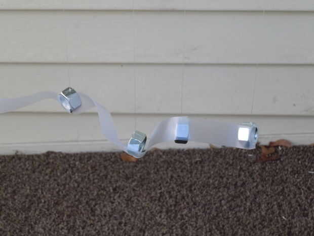 Para un estabilizador adicional, podría un filamento a través de las tuercas de la cadena (si eso es lo que usted ha utilizado), scotch cinta adhesiva como se muestra en la imagen, o cualquier cosa que usted puede pensar. Sólo tenga cuidado de que no puede utilizarse como un trampolín para las ardillas. Incluso si no se consiguen en cualquier lugar utilizando, su peso puede poner en peligro el sistema.