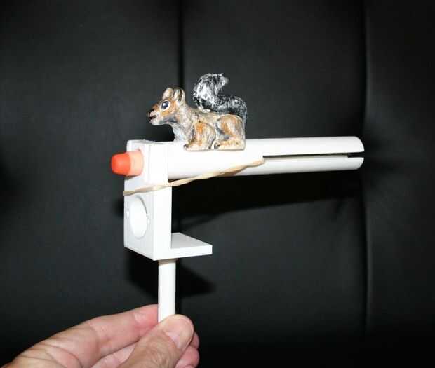 Este es un 3D impreso, goma con ardilla repelente--usando un proyectil de nerf por sus propiedades repelentes.