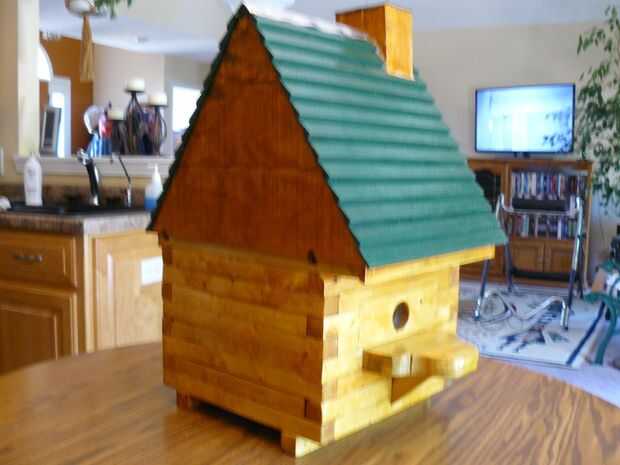También utiliza los tablones de la misma para los estantes a la moda el Cabrios y viga cumbrera, pero tuvo que cortar más. Cada dimensión en la construcción es un derivado de la Plaza de 1", 1' largos troncos de las paredes, pero aviso que hice el techo 2" más amplia en la dirección delantera/trasera para prever un saliente en la parte delantera. Esa proyección también crea un "loft" sobre el agujero de entrada.