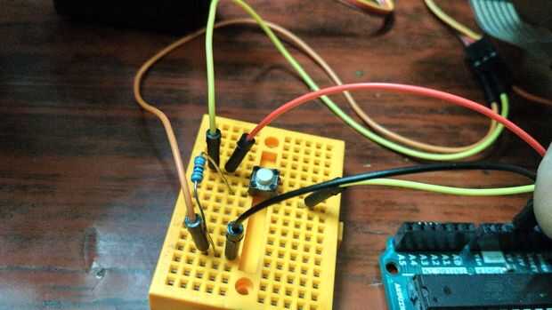 La cerradura de la puerta tiene un botón para abrir o cerrar una puerta desde el interior. Construí con un pulsador. Como arduino Lee forma de voltajes de un circuito cerrado que creamos un circuito con una resistencia.
