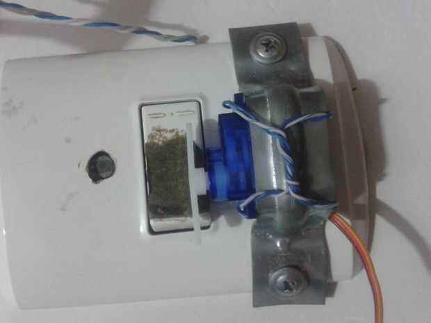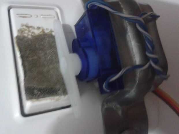 Ponga el servo en donde la tubería debe ser (si quieres fijarlo con pegamento, epoxy o incluso cinta, usted puede incluso poner algo espumosa entre la abrazadera y el servo si sientes que es demasiado flojo) y atornille la abrazadera de la cubierta de la luz