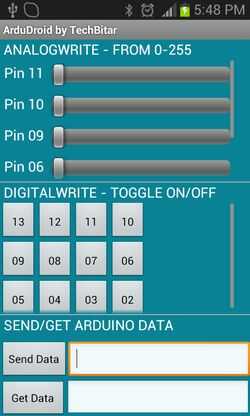 Puede usar ArduDroid para enviar comandos al Arduino para controlar un relé para activar/desactivar el gadgets eléctricos, control de un servo robot, aumentar o disminuir la velocidad de una motor y reversa dirección, atenuar una luz, la velocidad de un ventilador y así sucesivamente. Además, puede leer sensores y pines de Arduino y transmitir los datos a tu teléfono android.
