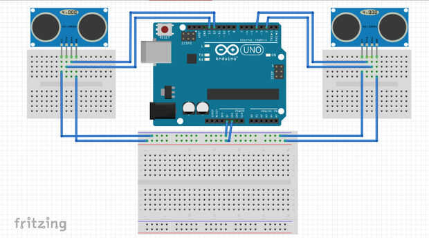 Conecte los sensores ultrasónicos como se muestra en el circuito de cambio de imagen: