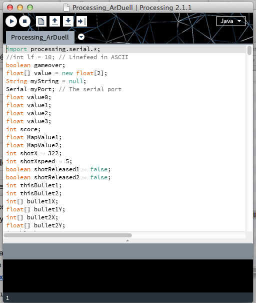 2. descargar el código de procesamiento. O desde el archivo "Processing_ArDuell.pde" en la parte inferior de esta página de https://www.dropbox.com/s/am6sml8ae9cwiyt/Processi.... Luego de ponerlo en la carpeta que acaba de crear.