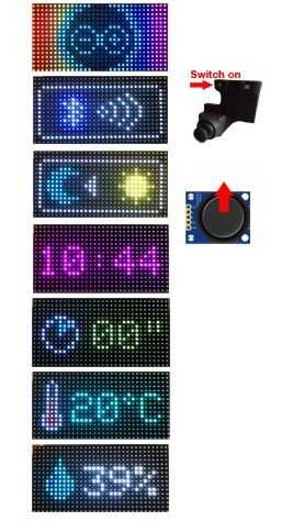 Durante el día, Arduibag sólo debe mostrar la información importante que aparece por lo tanto, a petición de los moteros. Por esta razón ofrecemos un modo de"día". En primer lugar, usted necesita encender Arduibag. Cuando veas la animación de"Bluetooth", puede encender el control remoto. Luego mueva el joystick hacia la derecha para activar el modo de día. Siga estas instrucciones para usar Arduibag: