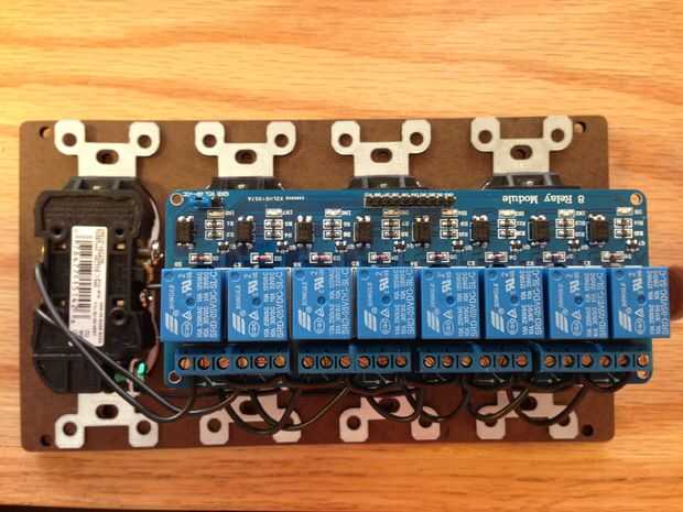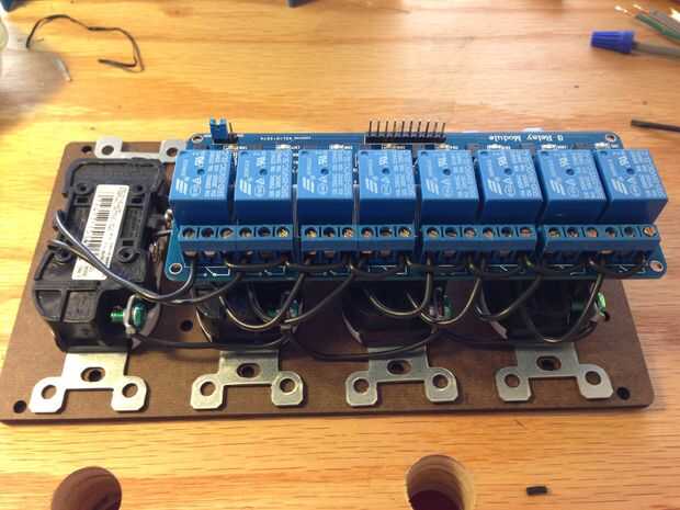 Cortar 7 tiras de una pulgada de alambre y los extremos de la tira. Hace en formas de la grapa y conectan todos los terminales del relé correcto. Deben todos tienen dos grapas permite entrar excepto el primero y últimos. Nota: todavía tengo los hilos de tornillo de oro atado con alambre mal en estas fotos! Debe ir a los terminales del relé de medio.