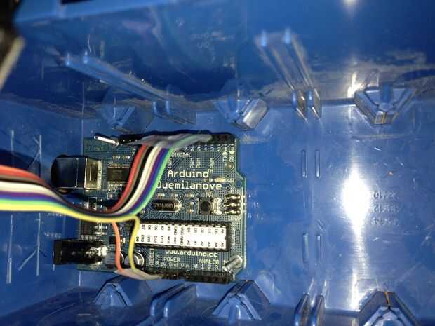Ahora usted necesita un cable para conectar los pines del 10 relé a Arduino. Esto es raro. Tenemos las 10 cabeceras mujer bonito todo en una fila, pero la división de encabezados masculino el primero y último apagado y conectarse juntos. Se trata de alimentación y tierra. Este cable es conectado a clavijas 2-9 del Arduino. Usar estos pines porque pins 0-1 se utilizan para comunicación serial con Max/MSP. Preste atención a cómo el cable se conecta a cada dispositivo que necesite un toque para obtener etc. de 1 a 1. Yo uso pegamento caliente y cinta adhesiva para cubrir las conexiones de soldadura expuestos para evitar que los cables cruzados.