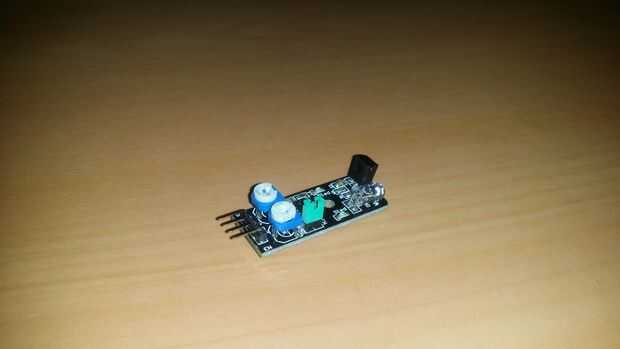 Este sensor usa un emisor de rayos infrarrojos y un receptor para comprobar si hay algún obstáculo delante de ella. Esto puede ser útil para un robot.
