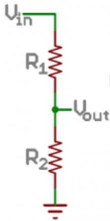 Para calcular la salida de voltaje utilizar esta fórmula: Vout = Vin * (R2 / (R2 + R1))