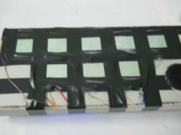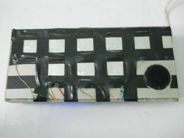 Básicamente, hay piezas cuadradas de aluminio cintas pegadas en una tarjeta gruesa que está conectado a un cable puente y un resistor, 8 réplicas de este se hacen, luego los otros extremos de los resistores están conectados juntos y al pin3 del arduino, esto actuará como el pin de la base común para todos los sensores. Los valores de resistencia pueden ser de 2 M o 10 M o 40 M ohmios. 2 M Ohm hará que sólo se detecta al presionar en la cinta de aluminio, 10M resistencia de Ohm hace que tu mano puede detectar a un altura de 2 a 4cm o menos y 40 ohmios se sensación bastante un poco más, pero se pone un poco desordenado como si las piezas de cinta de aluminio están demasiado juntos en eso altura de interferencias por lo tanto podrían obtener pulsar otras teclas. Si desea utilizar esta versión de 40M Ohm tienes que asegúrese de colocar las piezas de cinta de aluminio un poco lejos uno del otro.