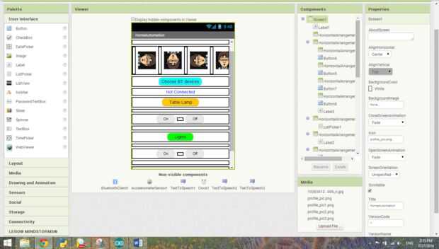 De la primera imagen de esta sección aquí se puede ver la interfaz de programación diferente de otros entornos de programación utiliza lenguaje visual en lugar de códigos complejos, puede arrastrar lo que quieras en la lista de izquierda, como el botón, etiqueta, imagen y etc.. Puede Agregar conectividad (por ejemplo, Bluetooth) o sensores (como el acelerómetro) en el proyecto así.
