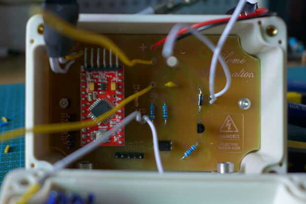 Toma un poco tiempo para ensamblar todo, llevó la lámpara de mi mesa y añade este circuito en. Asegúrese de que utilizar tubo del encogimiento del calor o con cinta aislante para cubrir las partes de 220V, si no quiere dejar su mesa coger un fuego. Realmente la corriente eléctrica es muy baja aquí, tengo esta bombilla de LED de 5W que sólo consume 5W/220V = 23, pero siempre asegúrese de que su proyecto es seguro! Usted puede utilizar una pistola de calor o un secador para tratar con calor el tubo del encogimiento, la única diferencia es que el más adelante uno puede tomar un poco de tiempo.