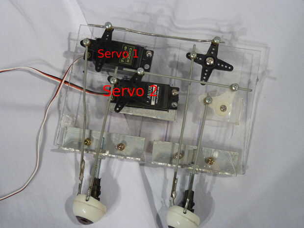 Para la primera salida del paso con un bien sacado del plan. Mantenerlo simple. Servo 1 es para el eje x. Servo 2 es para el eje y (ver imagen).