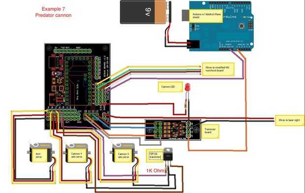 Usando una tabla modificada de nunchuck Wii podemos hacer un sistema de "seguimiento de cabeza" para controlar un animatronic cañón de depredador. Este sistema fue diseñado para parecerse al mecanismo de cañón en la primera película de depredador.