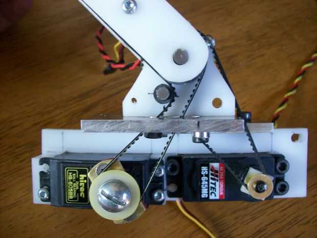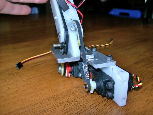 Hay un servo que se orienta 4:1 que levanta el brazo de cañón-en el código se puede ver esto como el servo gira 180 grados, 45 grados elevando el brazo de cañón. Los otros dos servos apuntan el cañón usando las entradas de acelerómetro. Hay transistores que encienda los servos que apunta y mira láser cuando se presiona un botón. Si los servos puntería estaban siempre en el cañón girar aun cuando estaba en la posición bajada, así que necesitan una manera de ser apagada cuando se baja el cañón.