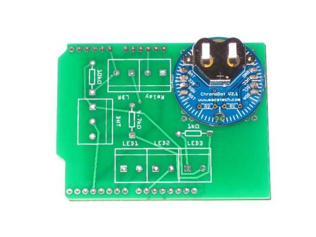 El Entorno de DAQ puede configurarse con la ChronoDot usando el área de prototipos, que es exactamente lo suficientemente amplio como para manejar el RTC (coincidencia?).