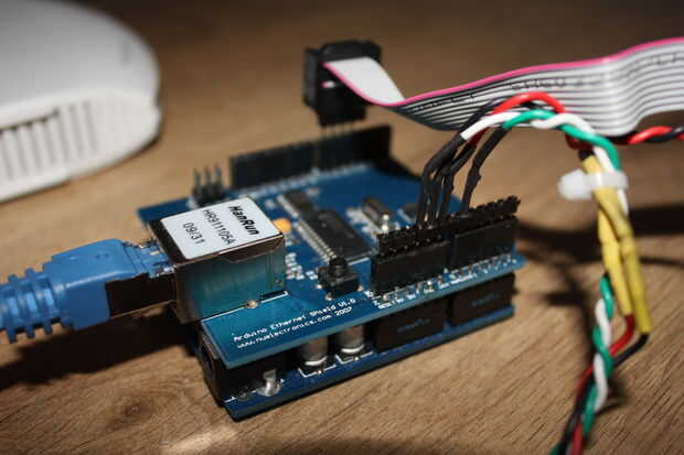 Un cargador de celular viejo me da 10v DC que llego a la arduino a través de la Vin + GND pins.