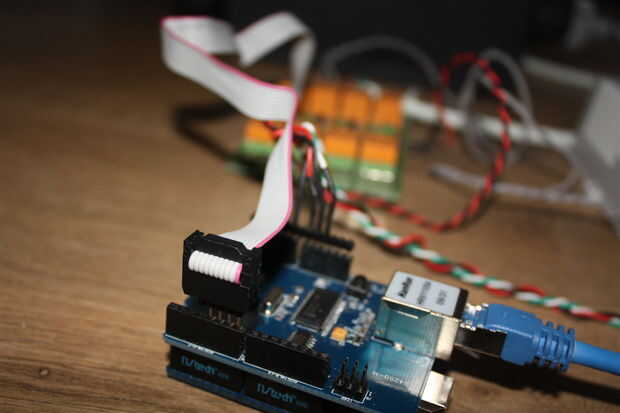 Un pin digital 4 se utiliza para la tierra por causa de conveniencia, realmente (el conector que viene con la placa de relé convenientemente tenía 3 relés + tierra en 4 pernos adyacentes... Si tiene sentido...).