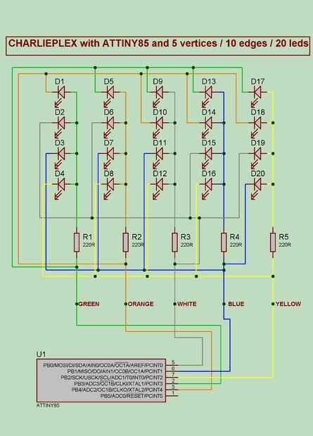 Control de 20 Led de 5 pines de Arduino usando Charlieplexing