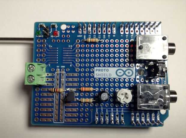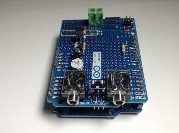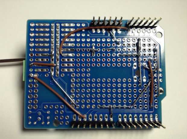 La última foto muestra que el escudo de Proto instalado en el Arduino.