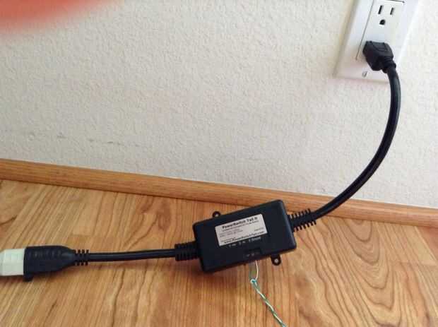 El enchufe del extremo de la cola de PowerSwitch para entra en el tomacorriente en la pared. El enchufe de mi sistema de entretenimiento en el hogar va en el receptáculo en la cola de PowerSwitch para. (En realidad, todo está conectado a una regleta que se conecta entonces a la cola de PowerSwitch para).
